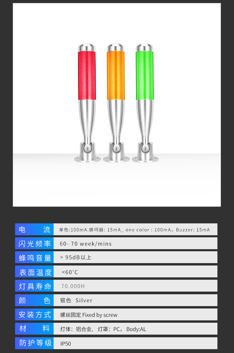 OUJVAN机床警示灯24v全铝自带蜂鸣器OJ-Q4L三色指示灯定制