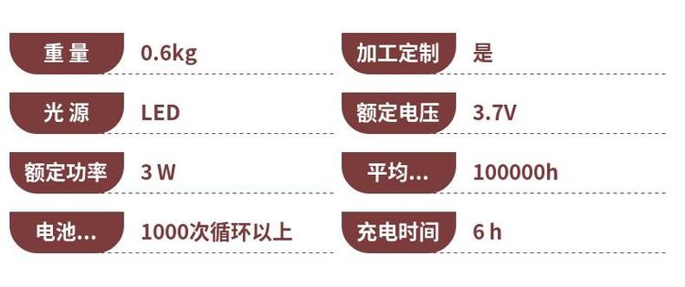 连续放电时间 | 强光≥12h,工作光≥22h | ||