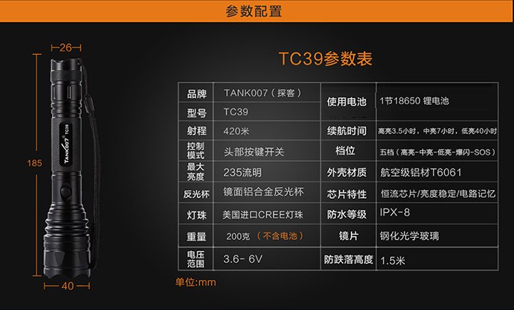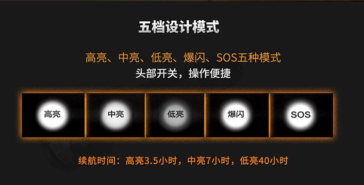 续航高亮3.5小时,中亮7小时,低亮40小时