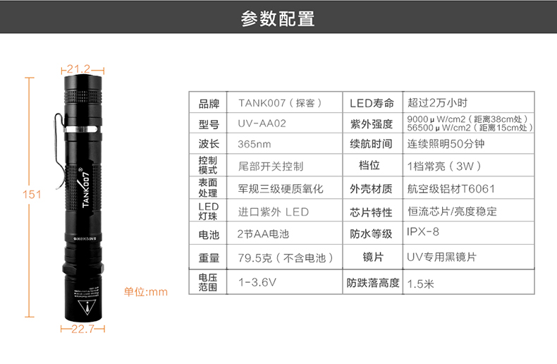 适用环境 | 猎奇寻宝、古董鉴定和寻矿野外探察、油墨固化、UV胶水固化、防伪标识 | ||