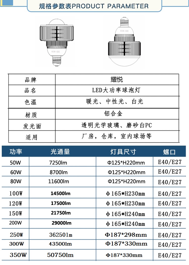应用范围 | 高铁站/火车站内更换传统灯具、植物生长灯,种植大棚、工业照明 | ||