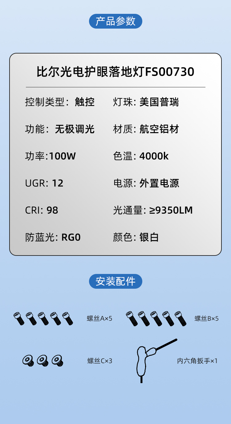 用途范围 | 阅读学习 办公工作 儿童护眼 落地照明 室内照明 卧室照明 | ||