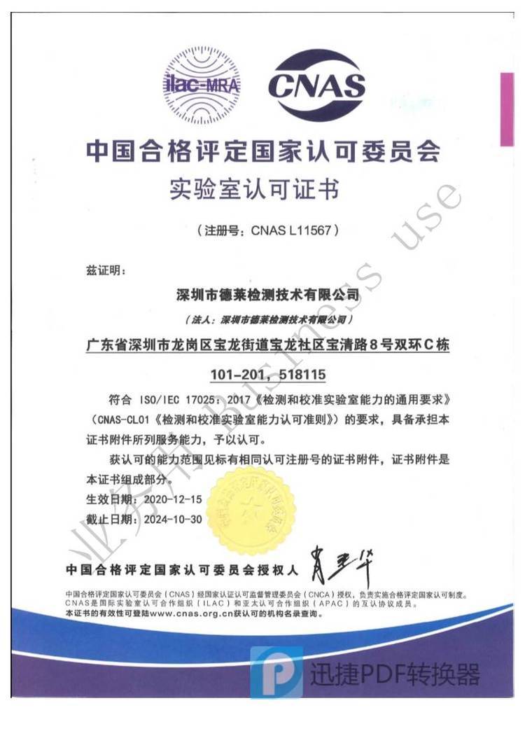 商铺名称:深圳市德莱检测技术有限公司