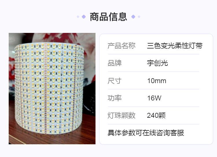 家装24v双色灯带双排240颗家用照明16W高亮led客厅装饰及氛围营造