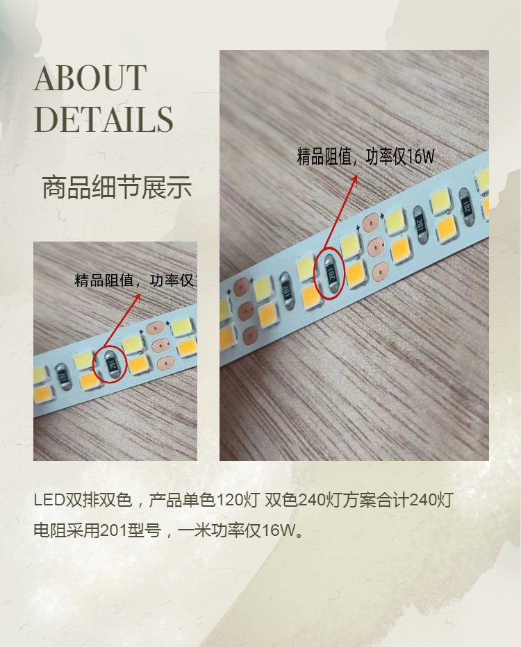 防水灯带2835双色温灯带240灯/米双排高亮12Vled灯条 品牌 | 宇创光 | ||