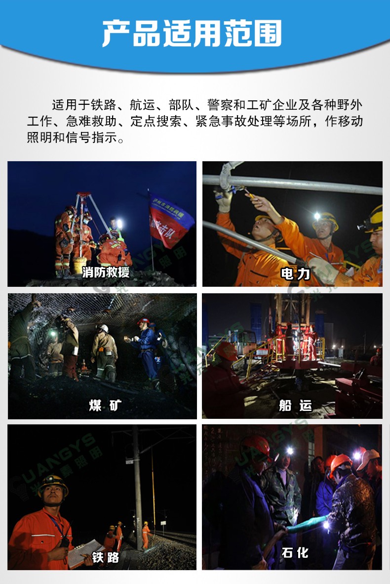 适用环境 | 铁路、航运、部队、警察和工矿企业及各种野外工作、急难救助、定点搜索、紧急事故处理等场所作移动照明和信号指示 | ||