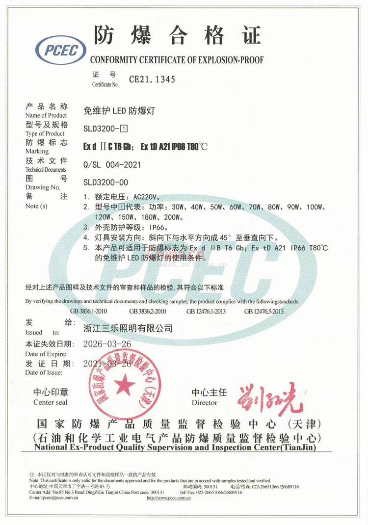 浙江三乐照明有限公司创始于2006年,? 是 研发、生产、销售为一体的公司,公司坐落 位于“中国电器之都”、“中 爆电器生产基地”浙江乐清市柳市镇, 从事煤矿、石油、化工、船舶、铁路、电力等特种照明。防爆电器、固定式防爆照明、固定式 照明、移动式防爆照明、移动式 照明,防爆配件系列产品的研发、制造、销售、和服务的高科技企业。