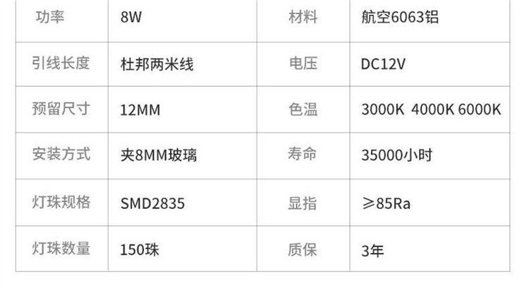 安装方式 | 夹8MM玻璃 | ||