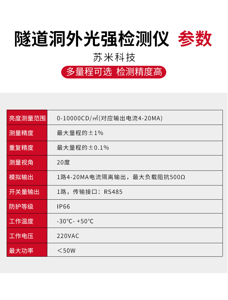苏米科技隧道专用洞外亮度检测仪光强检测器支架式安装精准测量