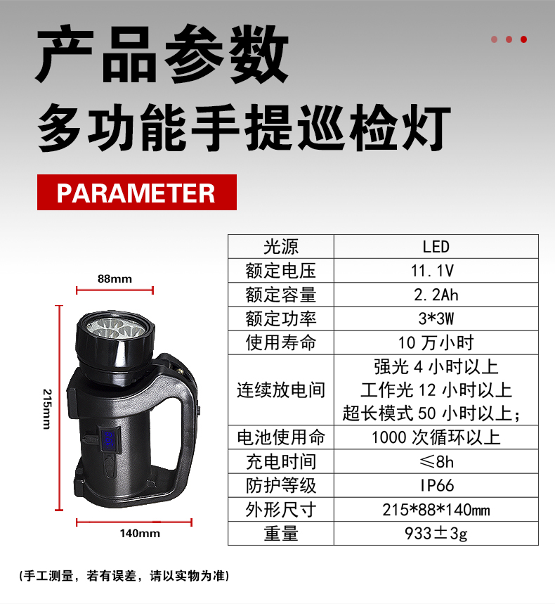BJQ5502多功能手提巡检灯/大功率手摇式探照灯/手持灯 功率 | 3×3W | ||
