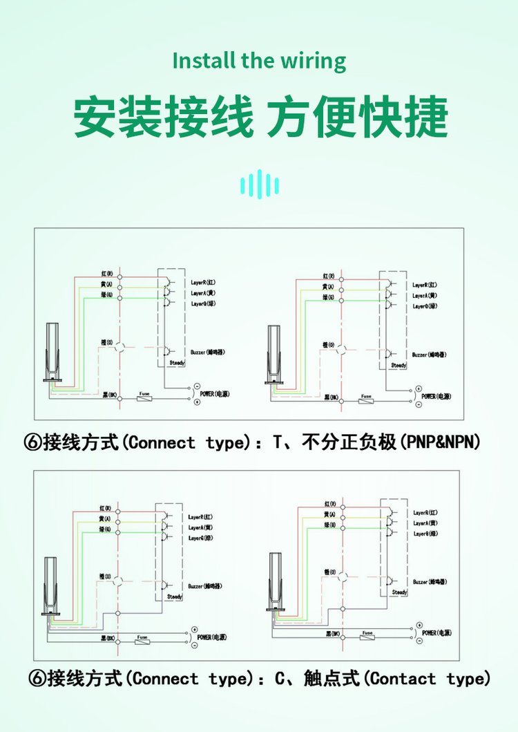 接线方式 | 不分正负极 | ||