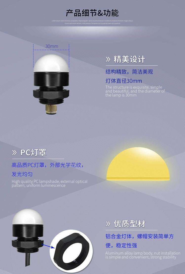 欧恩圆形三色报警灯M4B-30小型指示灯设备警示灯IP67高防护12/24V 品牌 | 欧恩 | ||
