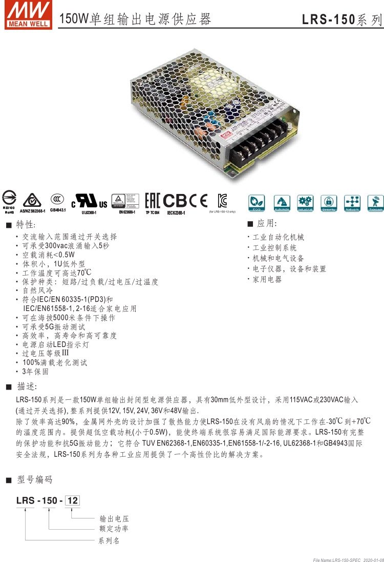 功能用途 | 单组输出超薄高效工控自动化开关电源 | ||