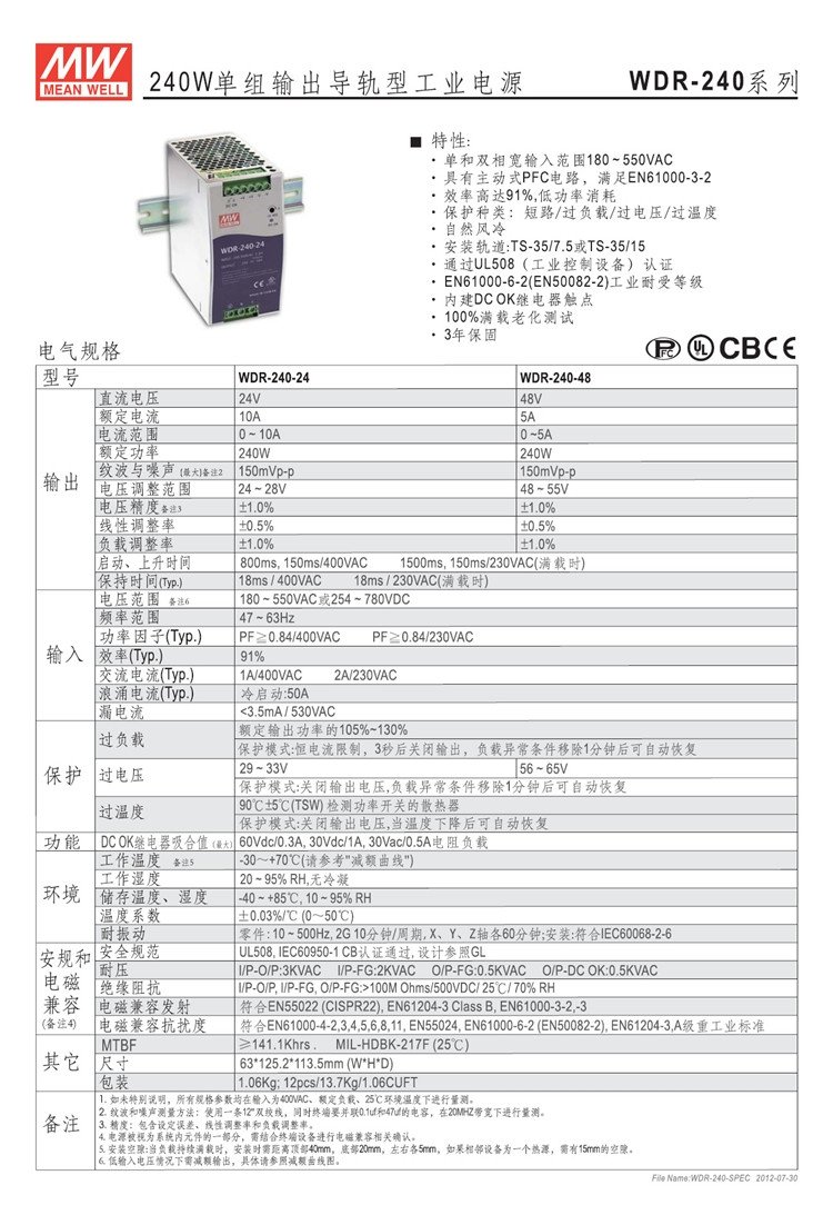 型号 | WDR-240-24 | ||