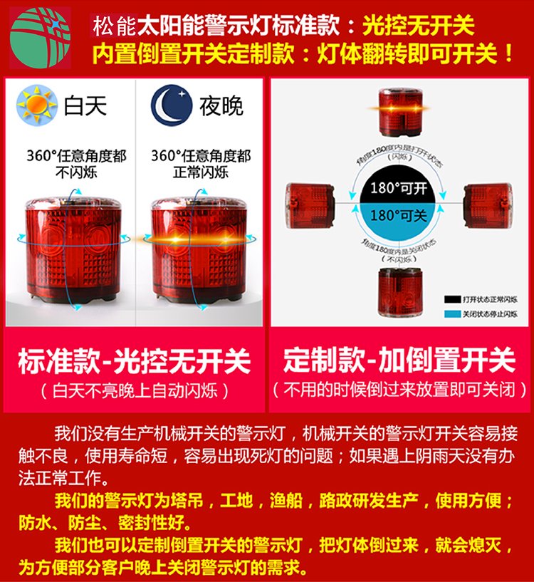 支座款太阳能警示灯,共有近10种支架安装方式,几乎能够覆盖生活中应用场景的方方面面,均可购买支架款,方便了安装。