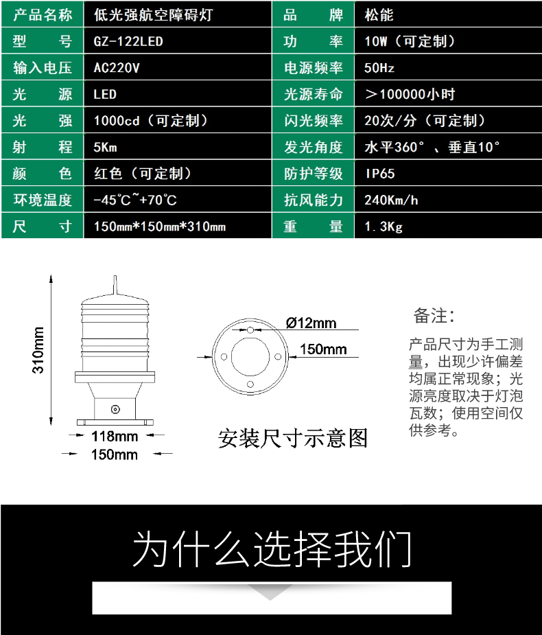 松能GZ-122LED低光强航空障碍灯红色定光航标灯航空灯