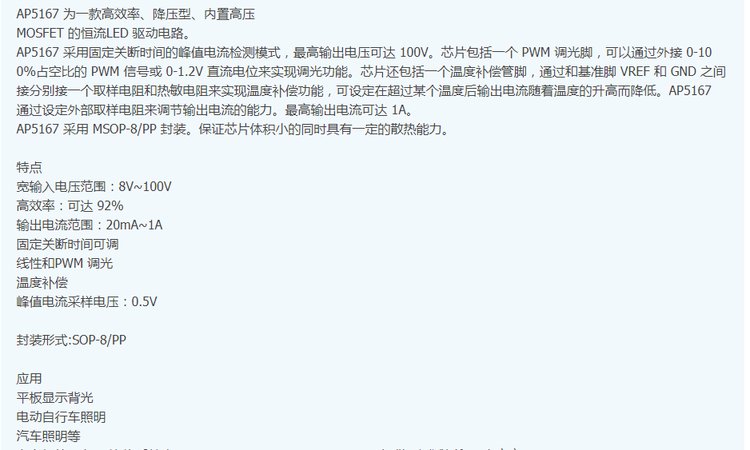 世微 AP5167 替代PT4115 6-60V/1.2A宽电压应用 汽车照明芯片 品牌 | AP/世微 | ||