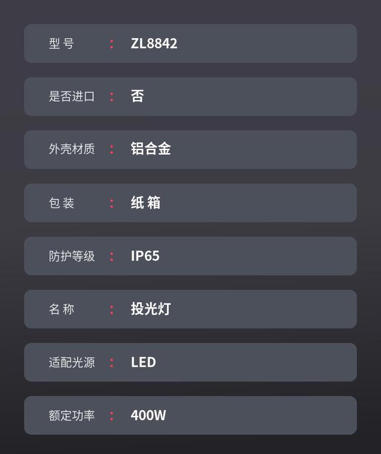 ZL8842_L多功能LED工作灯投光灯400W65铝合金纸箱否