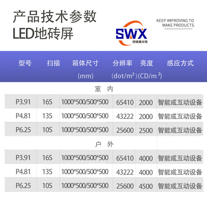 型号SWX-LED互动地砖屏