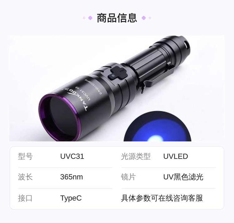 UVC31直充紫外线手电筒原装进口UV厂家直销冷光源设计