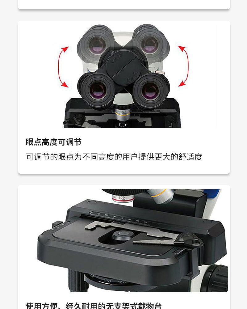 调焦机构有粗调限位,可以进行张力调节,避免标本或物镜的损伤