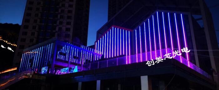 3、本产品是一款专为桥梁、商业大楼、古建筑物或户外公园设计的高科技产品,可多条灯具级联组成色彩鲜艳,炫彩迷人,采用三基色(R、G、B)组成,可显示六万多种颜色,播放幻彩色和视频均可实现。