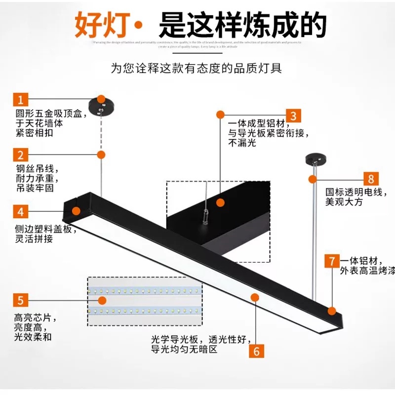 4、LED掉线灯安装使用方便,主要运用于办公场所,商业照明可拼接不同款式组合,适合不同环境使用。