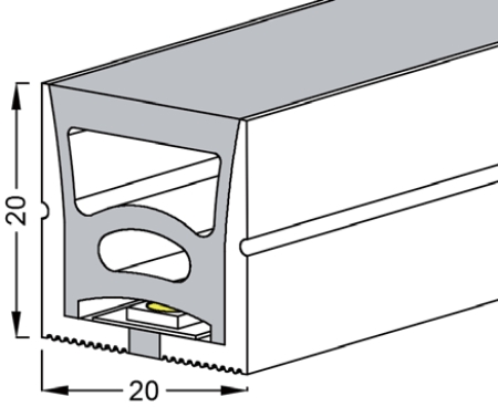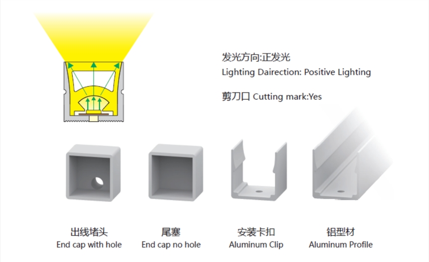 该产品是一款正方形平面正发光之硅胶数码霓虹柔性光源,长宽皆为2公分,光色均匀一致,适用于室内外各种光色亮化。