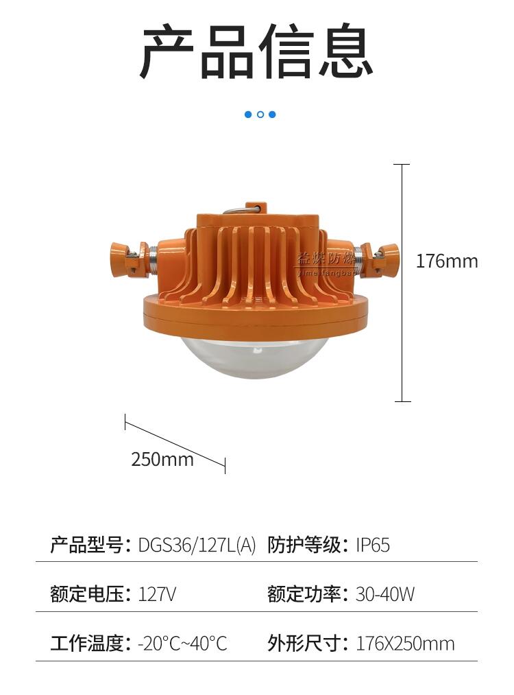 秦安款防爆巷道灯 DGS36/127L(A)矿用LED巷道灯技术参数: