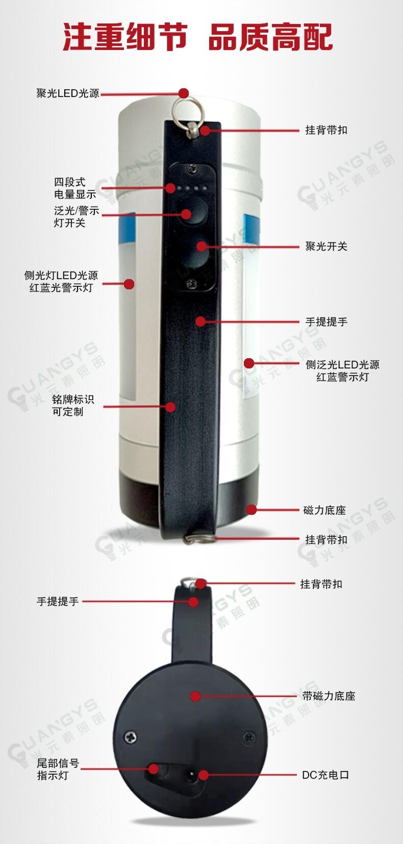 功能多样:消防型号灯具尾部设计高透性、高可视性能的方位灯,在作业现场能清晰的显示持灯人员的相互方位;