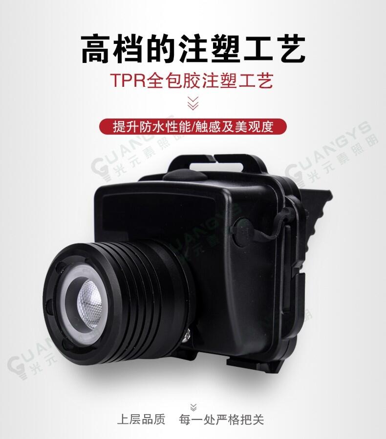 轻便耐用:外形灵巧美观,体积小、重量轻,人性化设计,可直接头戴或安装在安全帽上使用,头带柔软、弹性好长短可调,照明角度可随意调节,适合头部佩戴使用。