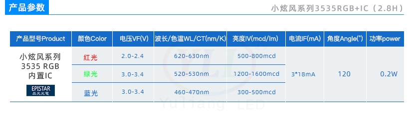 3535RGB+IC幻彩灯珠12V适用于LED点光源、外漏字注塑、汽车装饰氛围灯、室内装饰LED灯具等。