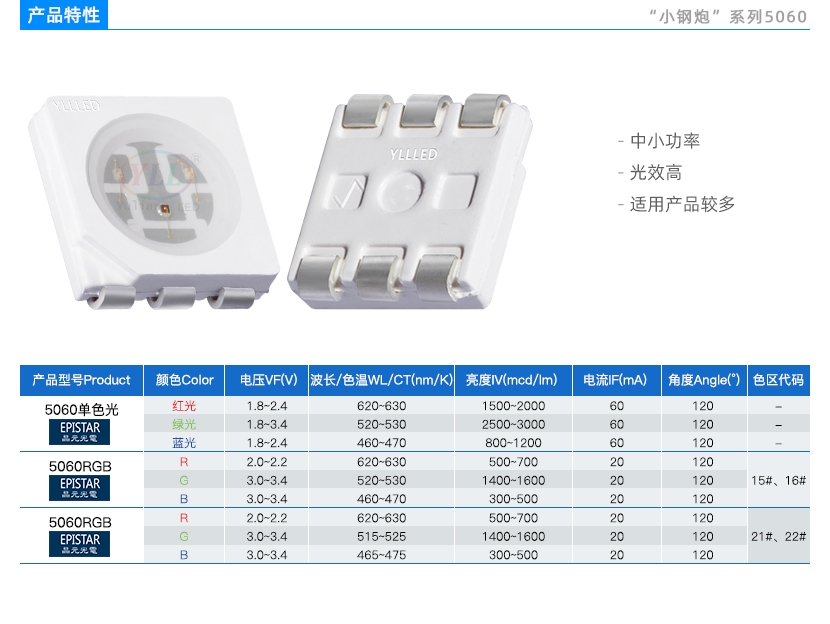 “小钢炮”系列5060RGB全彩led贴片灯珠