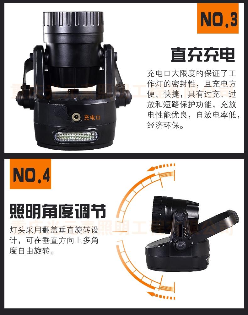 适用性强:聚/泛光模式可调,通过转动灯头和提手,可调节灯光照射角度,并设有黄光警示灯功能,提醒来往车辆注意安全,能过满足不同场所照明需求;