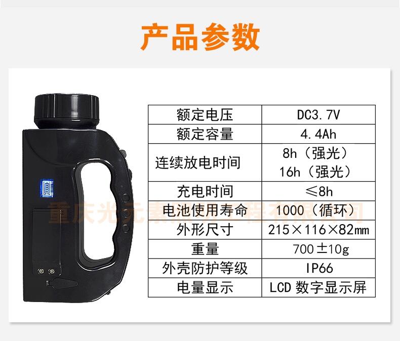 工作光、强光两种光设计,按动按钮可进行自由转换。工作时间长,强光和工作光的连续工作时间分别在8小时、16小时以上。光束角度可调,根据工作需要,灯具可在120°范围内调节光束角度;光斑可调,通过旋转灯圈调整光斑的聚、泛光,满足不同照明需求。外壳防护等级达到IP66,确保灯具在各种恶劣的条件下可靠使用。
