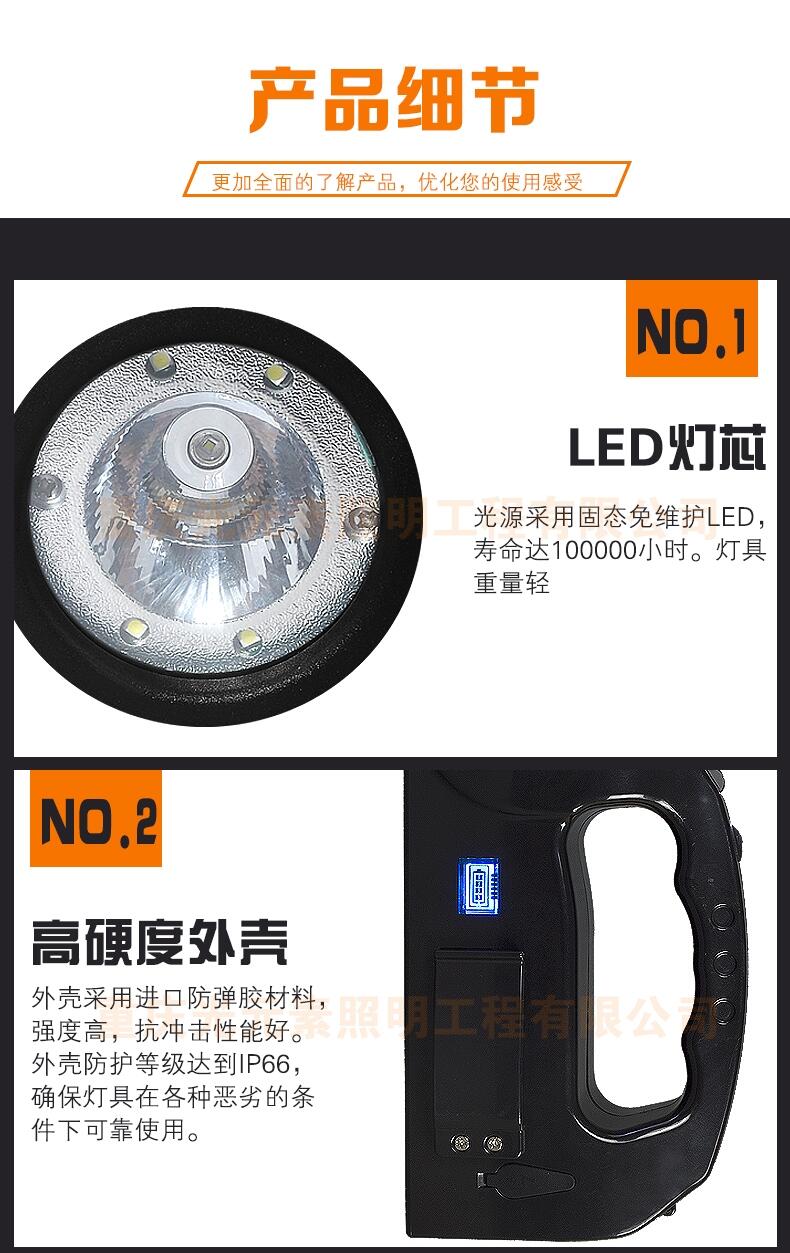 外壳采用进口防弹胶材料,强度高,抗冲击性能好。光源采用固态免维护LED,寿命达100000小时。灯具重量轻,可手持、吊挂、卡扣等多种携带方式,同时具有磁力吸附,使用方便。人性化的电量指示和低电压警示功能设计,可随时检测电池电量;当电量不足时,灯具会自动提示进行充电。
