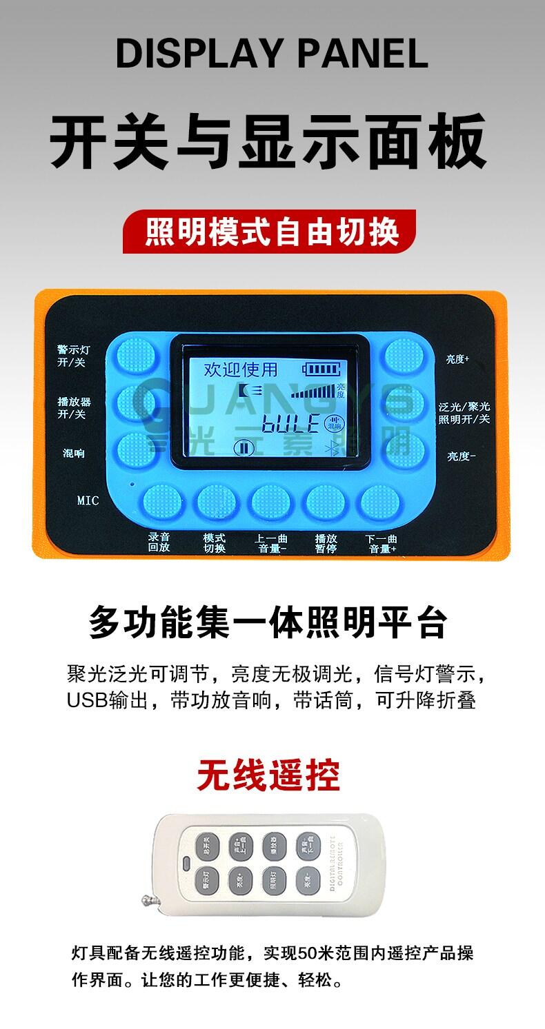 ●灯具配套遥控功能,遥控距离为50米范围可控制灯具照明、警示及播放功能;