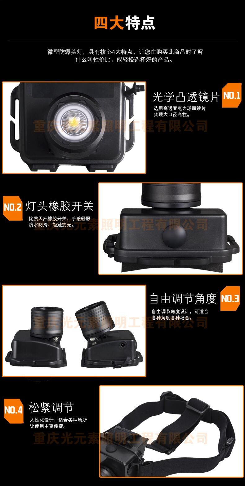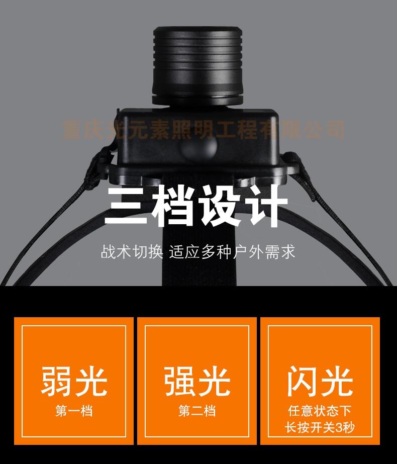 轻便耐用:外形灵巧美观,体积小、重量轻,人性化设计,可直接头戴或安装在头盔上使用,头带柔软、弹性好长短可调,照明角度可随意调节,适合头部佩戴使用。