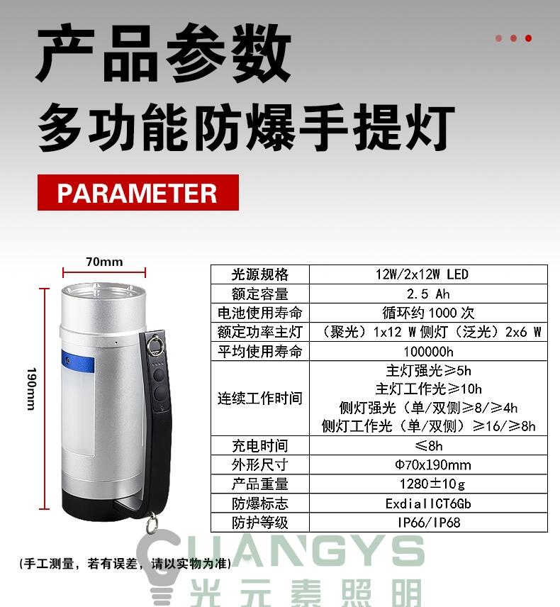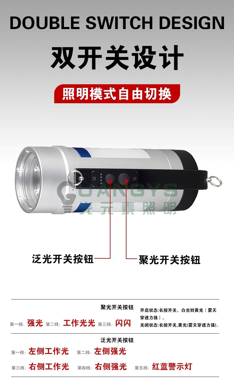 功能多样:消防型号灯具尾部设计高透性、高可视性能的方位灯,在作业现场能清晰的显示持灯人员的相互方位;