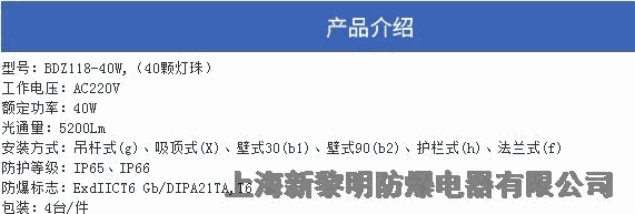 上海新黎明LED防爆灯BZD118-40W防爆免维护免维护LED照明灯
