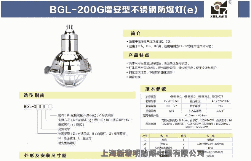 BGL-G不锈钢防爆灯 新黎明防爆灯 增安型防爆灯