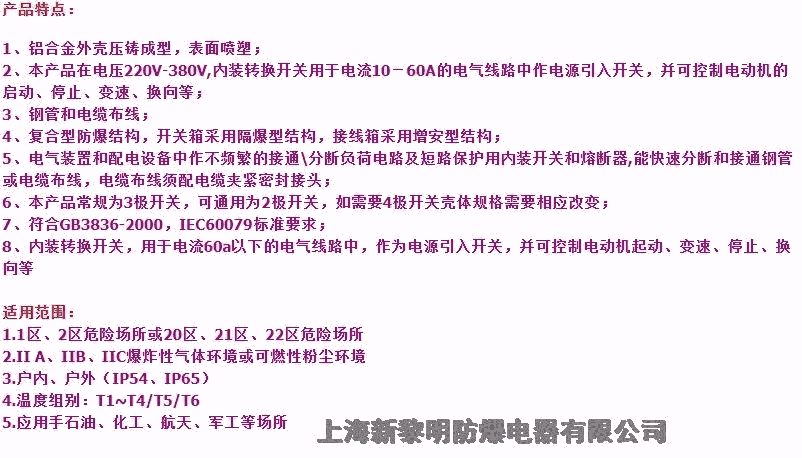 新黎明防爆倒送开关BQXN/BHZ51-10A/16A/25A防爆倒送开关国标