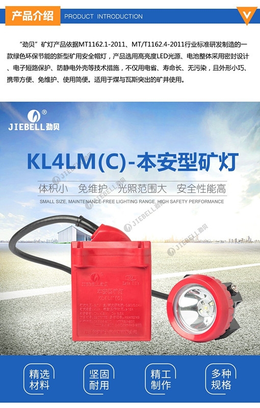 1)."劲贝"系列矿灯,根据MT1162.1-2011和MT1162.4-2011行业标准设计制造,体积小、质量轻,光照范围大、免维护、安全性能高。