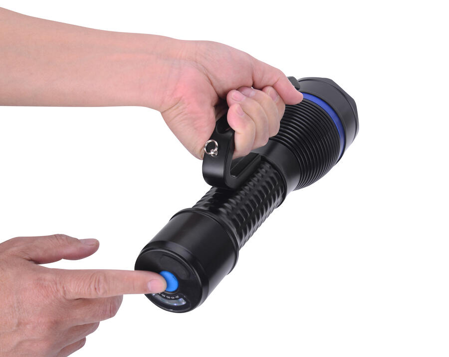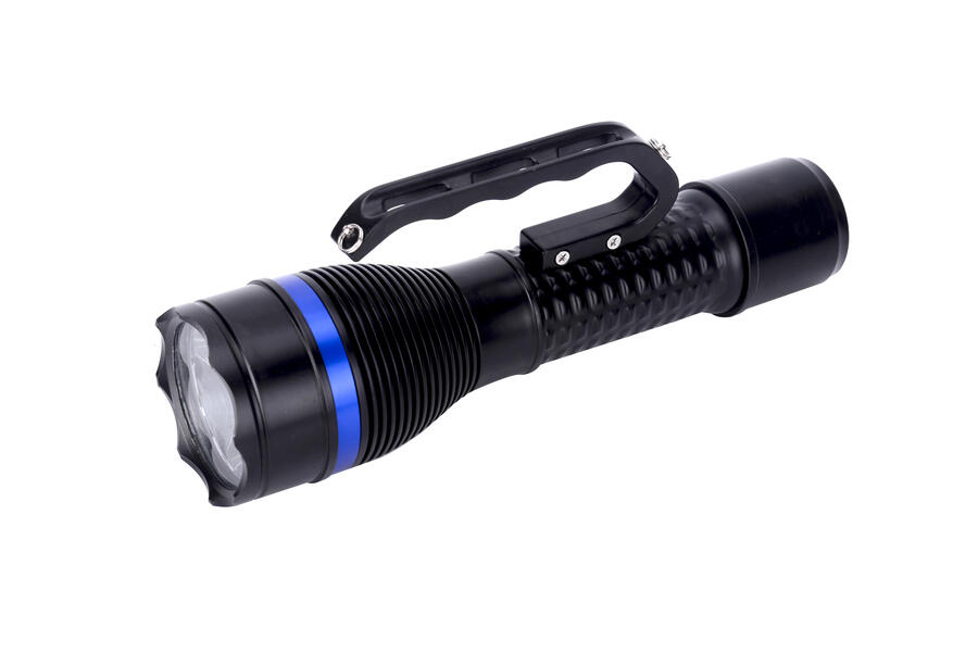 智能控制:3种光照模式:主光源有工作光、强光、爆闪三种照明模式设计,按动尾部按钮可进行自由转换;