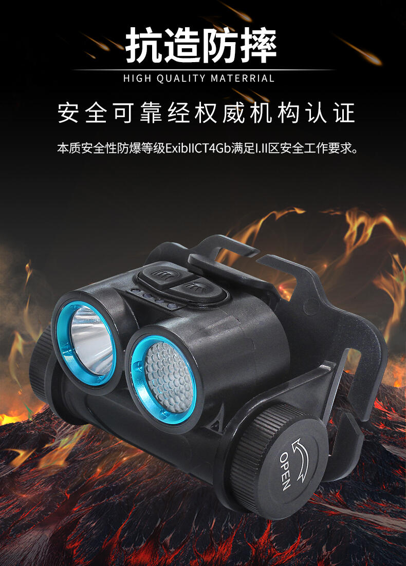 智能调焦:外壳采用进口工程塑料材质,抗强力冲击,防水、防尘绝缘、腐蚀性能好,头部采用双光源设计,可轻松实现泛光与聚光的转换,满足更多用户需求;
