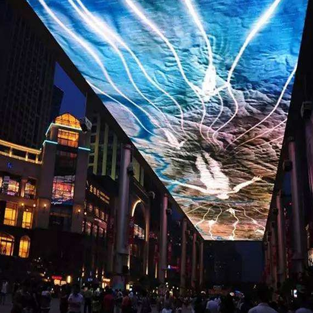 b、城市景观:LED天幕显示屏可以用于城市的建筑物、广场、桥梁等地方,为城市增添亮丽的夜景和视觉效果。