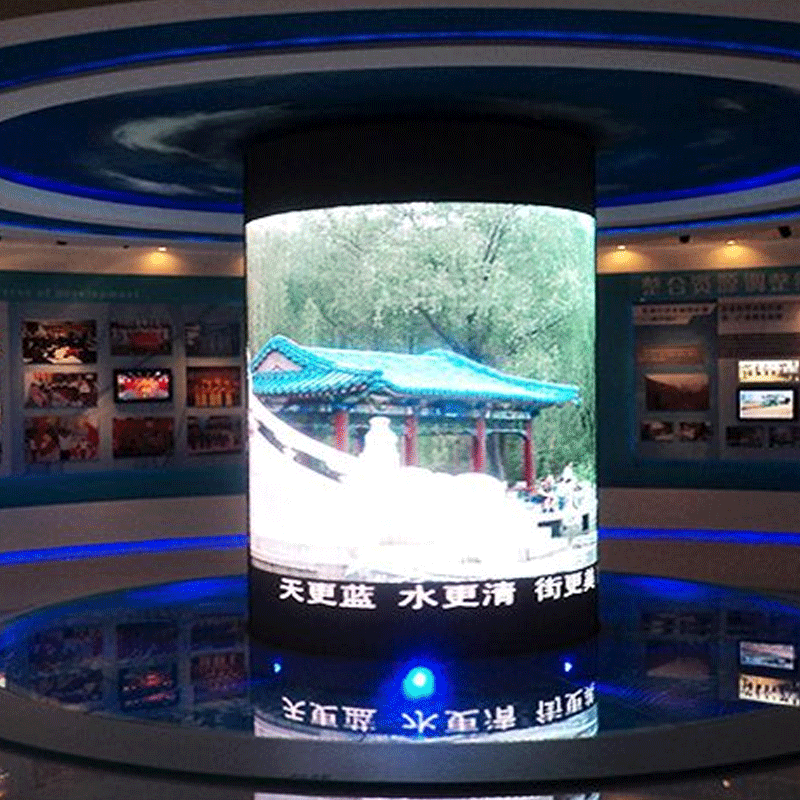 a、立体效果:柱形LED显示屏通过其立体的柱形设计,在平面显示屏无法达到的空间维度上具有优势,增加了视觉冲击力和吸引力。