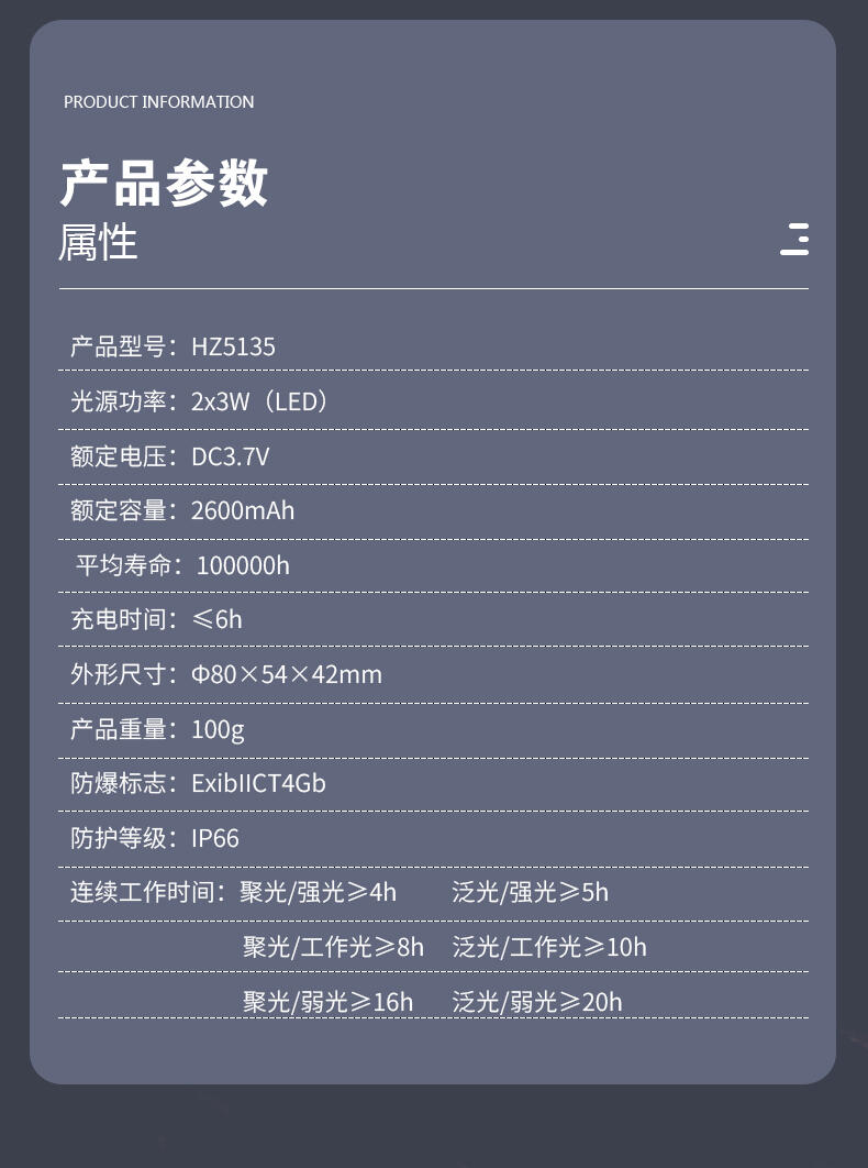 华州科技微型防爆头灯HZ5135源头工厂支持贴牌2*3W头盔式帽戴灯