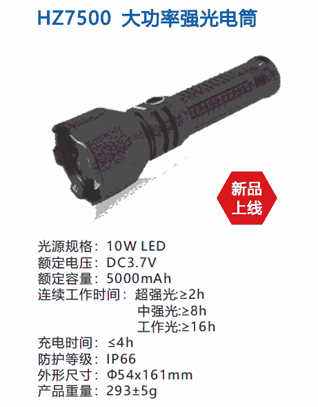 HZ7500巡检手电筒户外应急照明10W手电源头工厂直销