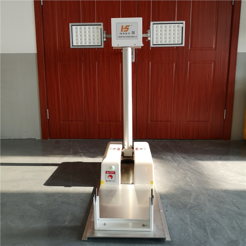 车载移动照明设备的立起高度为1.2米,是将灯具部件通过旋转云台固定在灯杆上,使用时将灯杆从水平立起,实现全方面的应急搜索定位照明。